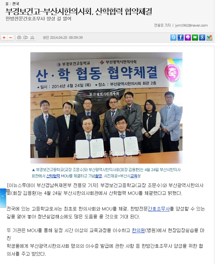 부경보건고-부산시한의사회 산학협력체결
