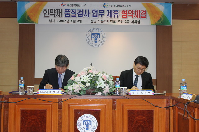 부산시 한의사회는 2일 동의대(총장 심상무)와 동의한약분석센터(센터장 김병우) 등과 업무제휴 협약을 체결했다.