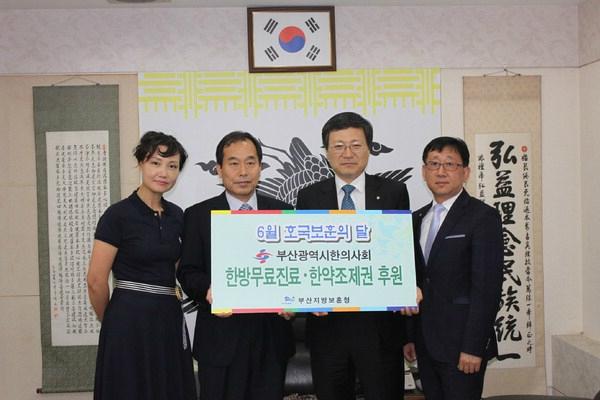 부산광역시한의사회(회장 김용환)는 지난 7일 저소득 보훈가족에게 따뜻한 마음을 전하기 위해 부산지방보훈청(청장 유주봉)