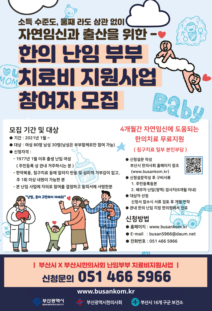 2021년 부산한의 난임부부 치료비지원사업 참여자를 모집합니다.