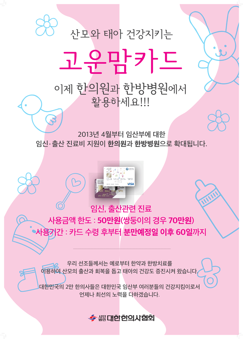 산모와 태아 건강 지키는 고운맘 카드, 한의원과 한방병원에서 활용하세요.