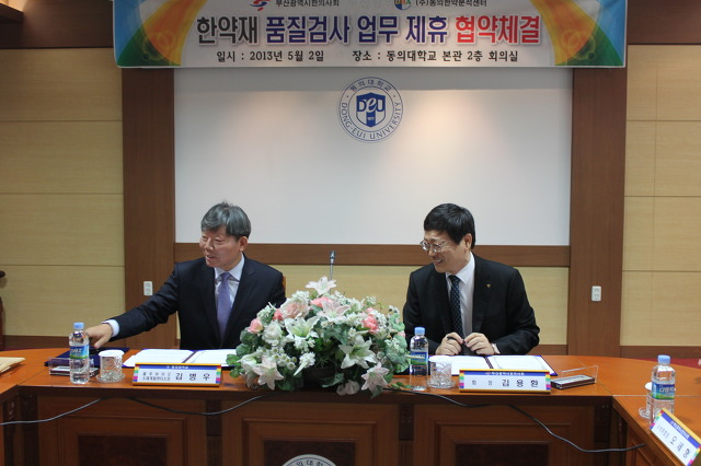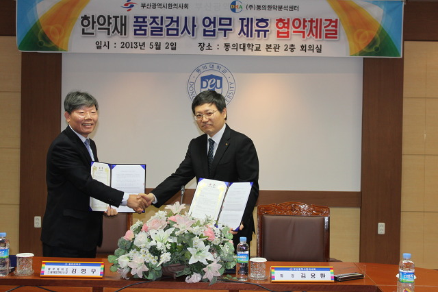 부산시 한의사회는 2일 동의대(총장 심상무)와 동의한약분석센터(센터장 김병우) 등과 업무제휴 협약을 체결했다.
