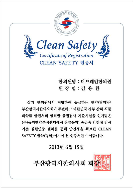Clean Safety 인증서