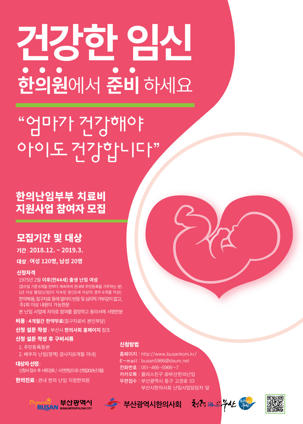 2019년 부산한의 난임부부 치료비지원사업 참여자를 모집합니다.