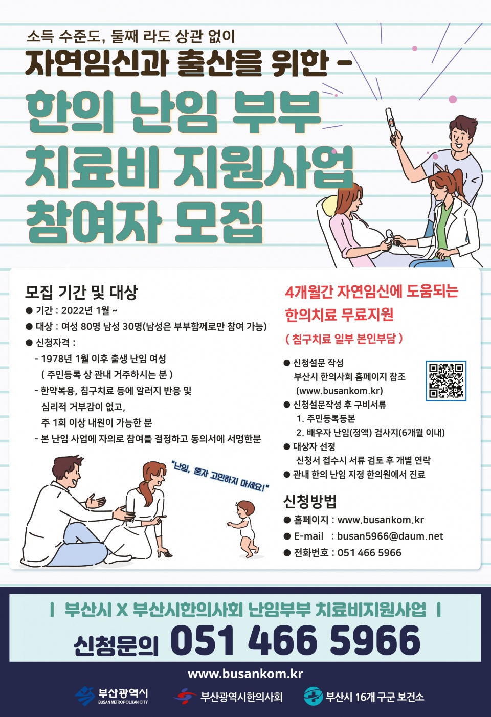 2022년 부산한의 난임부부 치료비지원사업 참여자를 모집합니다.